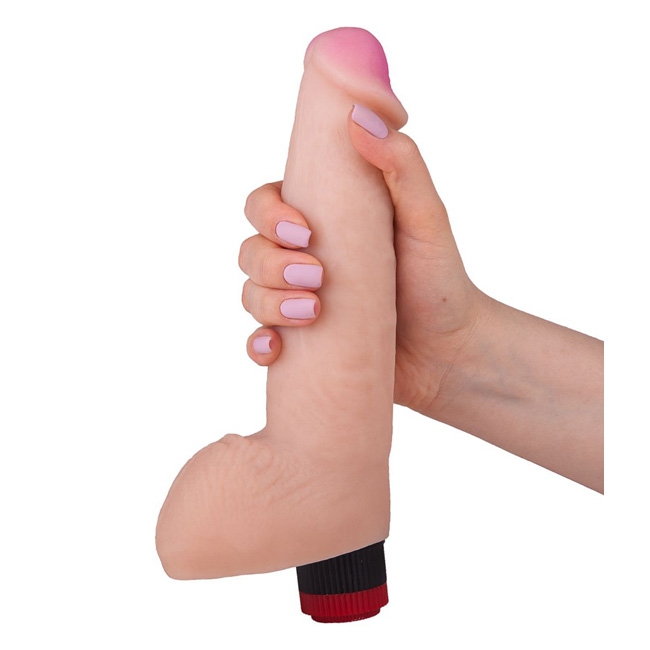 Вибратор-реалистик в форме фаллоса телесного цвета с мошонкой на основании.