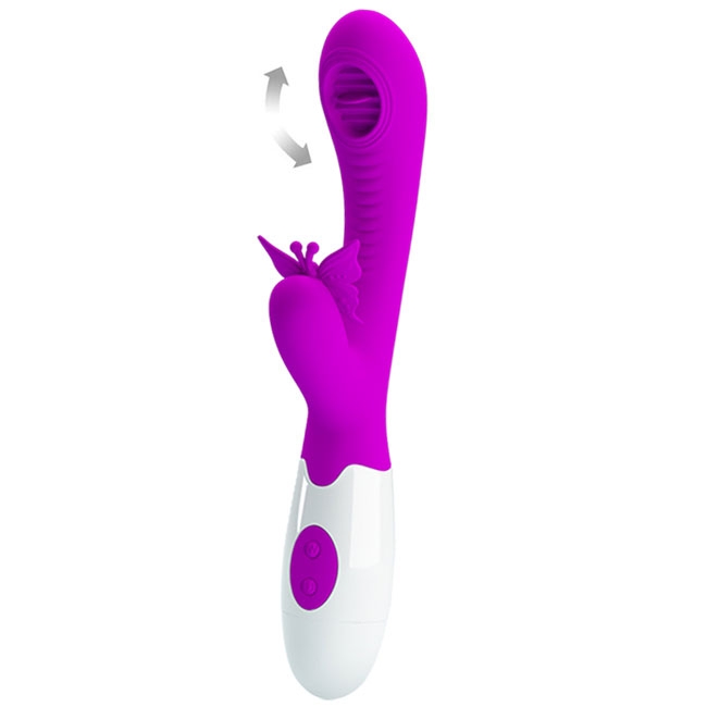 На головке вибратора есть небольшой язычок, который интенсивно движется вверх-вниз уделяя особое внимание стимуляции эрогенной зоне G. Мягкий и нежный стимулятор-бабочка обеспечит вибромассаж клитора, многократно усиливая возбуждение и яркость получаемых ощущений.